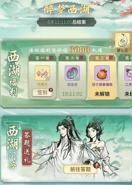 烟雨江南,,西湖三月,,,,宛若人间仙境,,,,正是如此,,修真界方才与之连通,,,共享两处风光。。。。此番《一念逍遥》联动西湖景区,,,,西湖十景被“搬”进游戏中,,,,仙友在游春过程中,,即可观赏到西湖奇景。。。每日前往签到、、、、参与游湖活动、、、进行莲鲤祈愿,,,皆可获得奖励馈赠,,在这烂漫春日里,,,,赏景、、修行两不相误。。。。